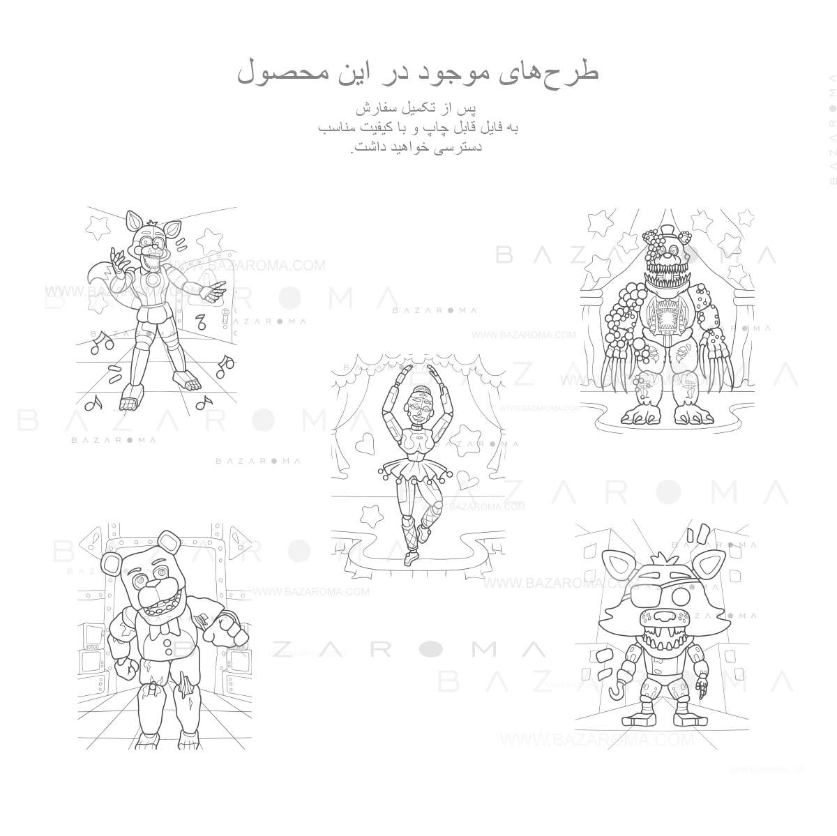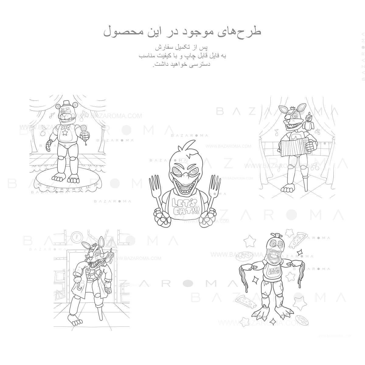 شامل ۱۰ طرح پر جزئیات از شخصیتهای FNAF