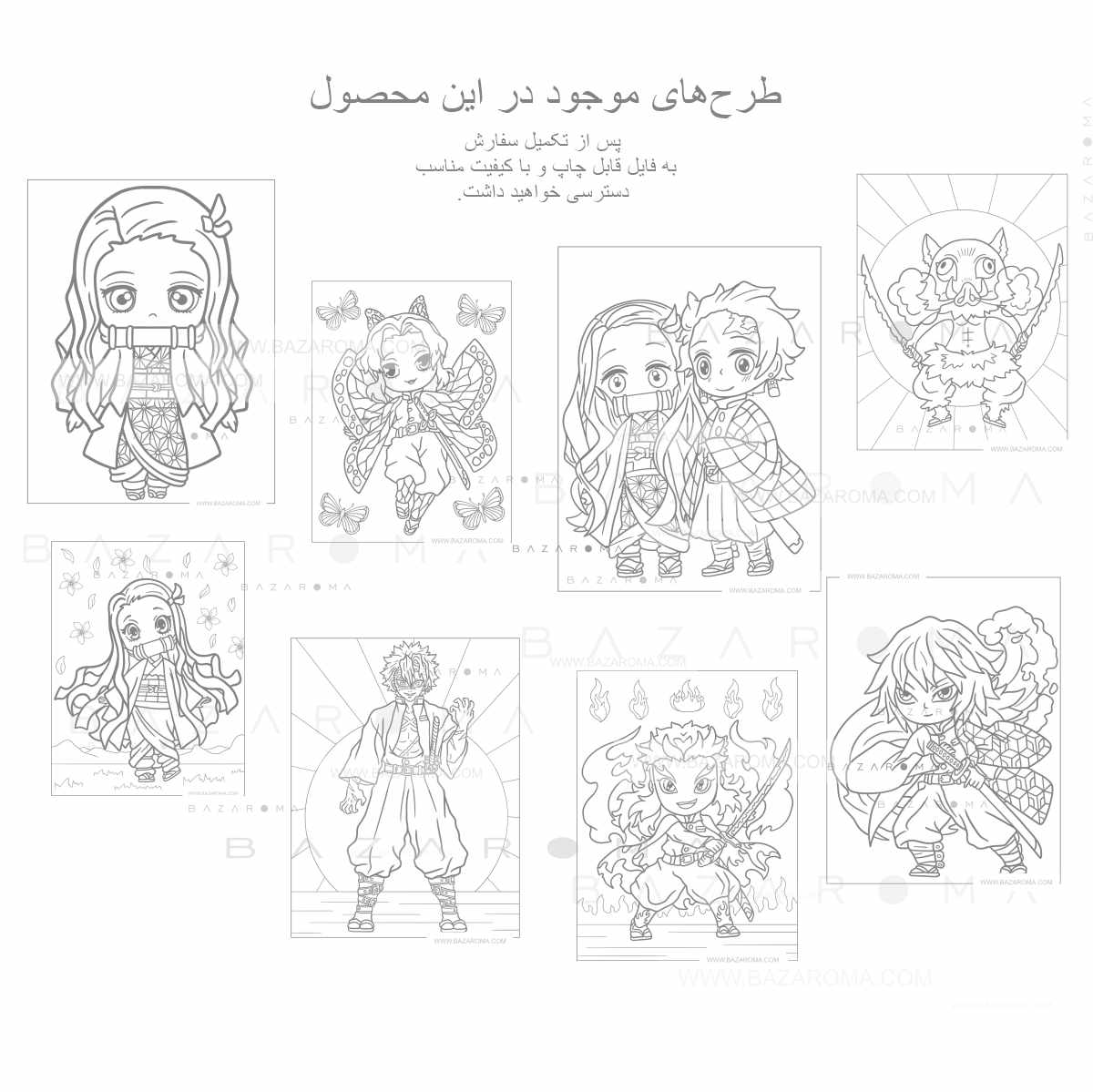 ۸ طرح کودکانه نقاشی رنگ آمیزی انیمه شیطان کش